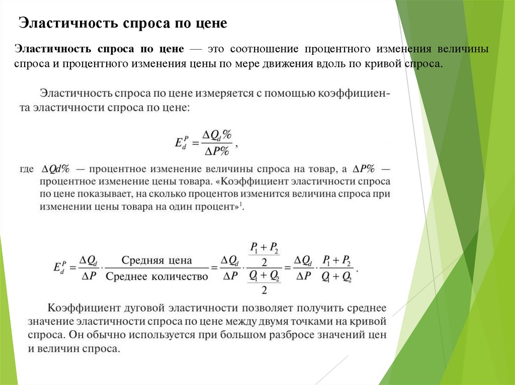 Эластичность спроса по ценеЭластичность спроса по цене — это соотношение процентного изменения величины