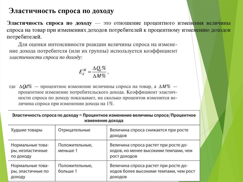 Эластичность спроса по доходуЭластичность спроса по доходу — это отношение процентного изменения величины