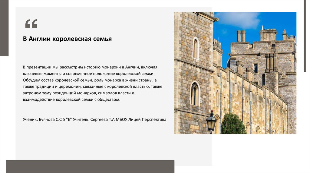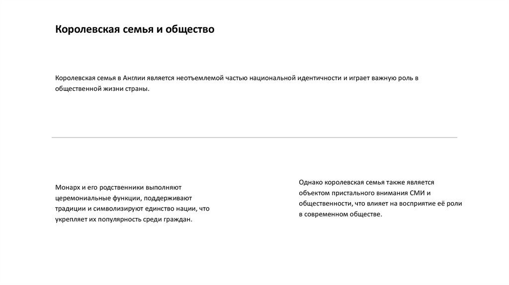 Королевская семья и обществоКоролевская семья в Англии является неотъемлемой частью национальной идентичности и играет важную роль в