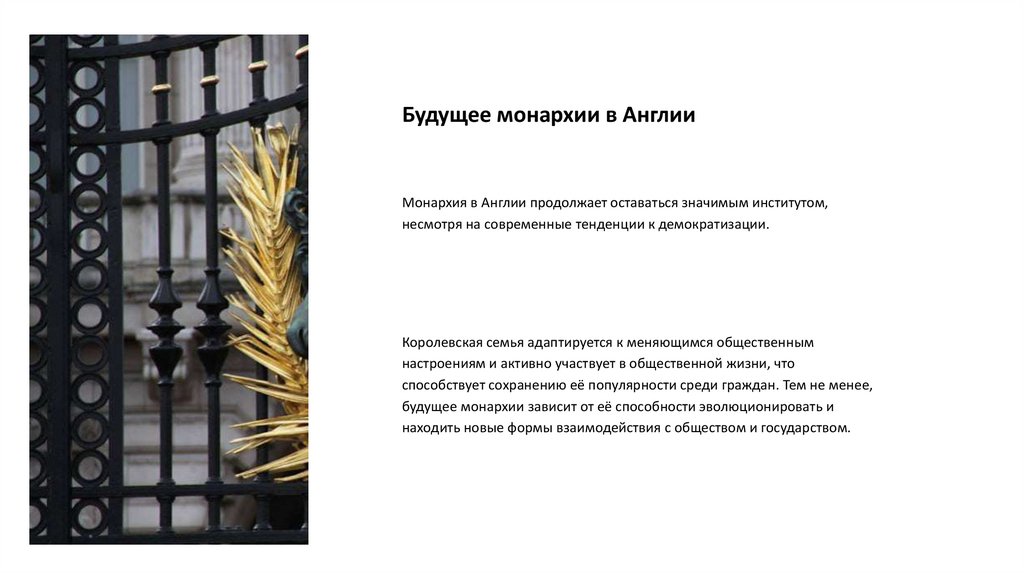 Будущее монархии в АнглииМонархия в Англии продолжает оставаться значимым институтом,