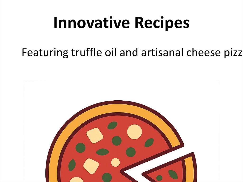 Innovative RecipesFeaturing truffle oil and artisanal cheese pizza