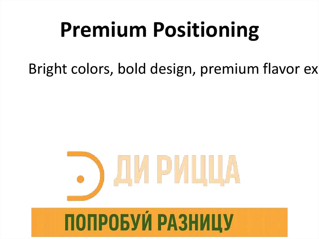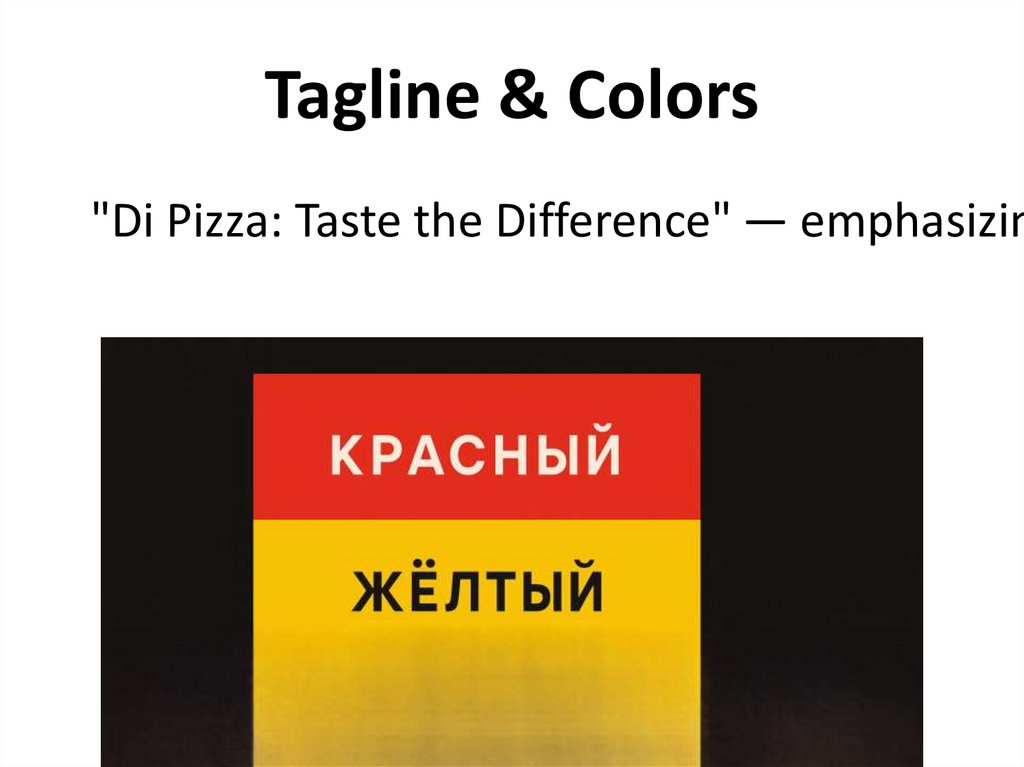 Tagline & Colors"Di Pizza: Taste the Difference" — emphasizin