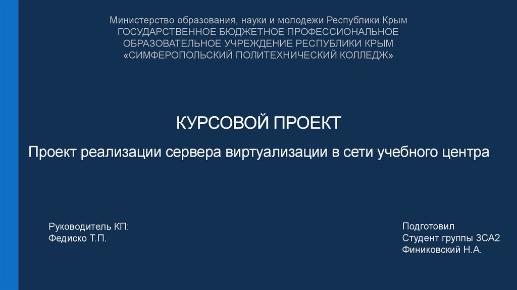 1. КУРСОВОЙ ПРОЕКТ Проект реализации сервера виртуализации в сети учебного центра