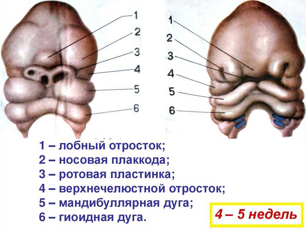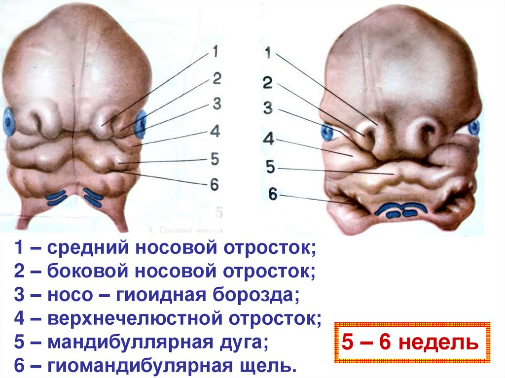 1 – средний носовой отросток;2 – боковой носовой отросток;