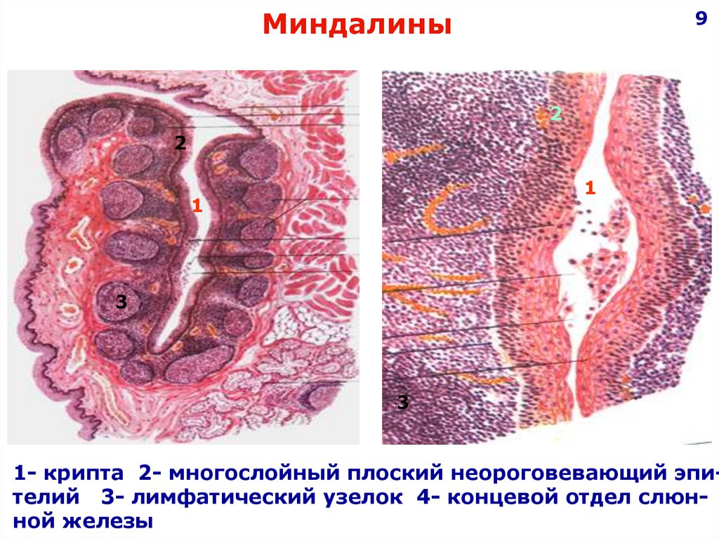 9. Передний отдел пищеварительной трубки (Ротовая полость с ее производными (губа, щеки, язык, зубы, небо, миндалины и слюнные