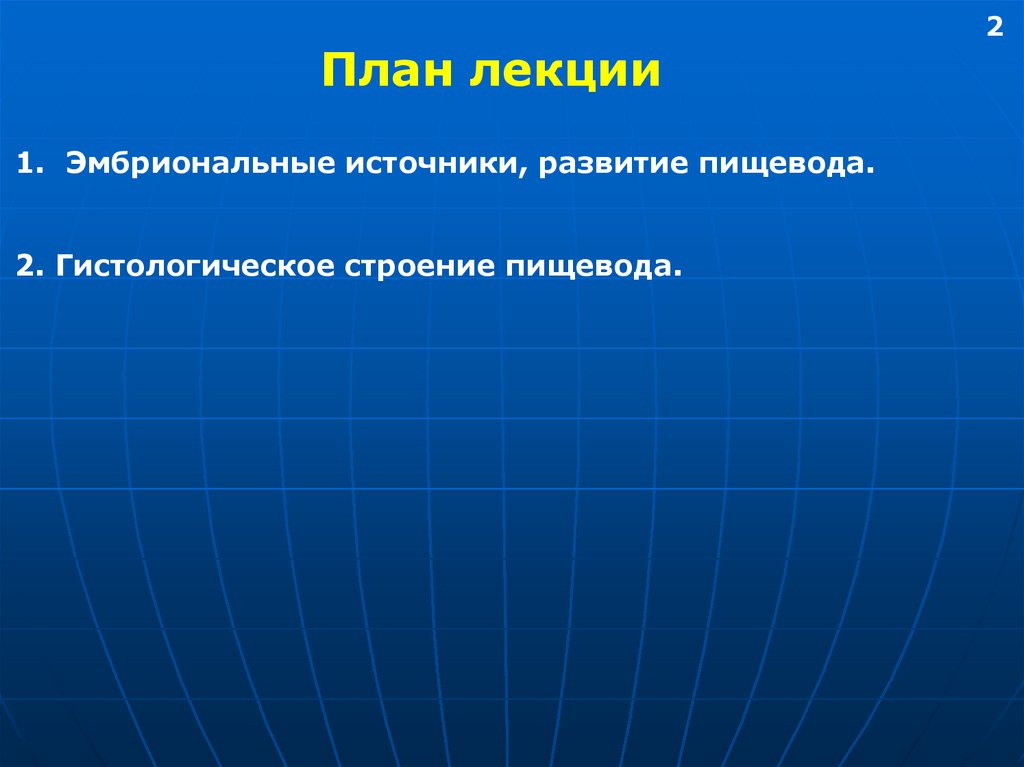 План лекции1. Эмбриональные источники, развитие пищевода.
