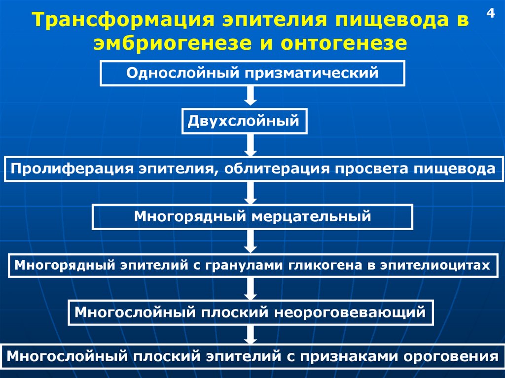 Трансформация эпителия пищевода вэмбриогенезе и онтогенезе
