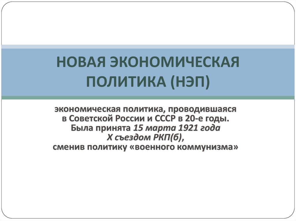 НОВАЯ ЭКОНОМИЧЕСКАЯПОЛИТИКА (НЭП)