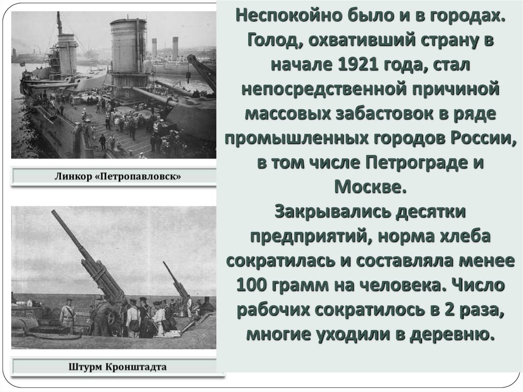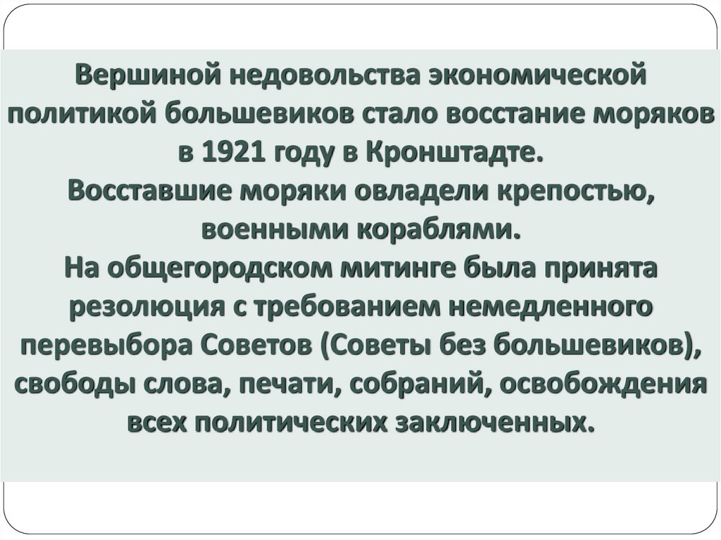 Вершиной недовольства экономическойполитикой большевиков стало восстание моряков