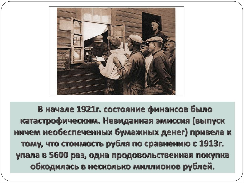 В начале 1921г. состояние финансов былокатастрофическим. Невиданная эмиссия (выпуск