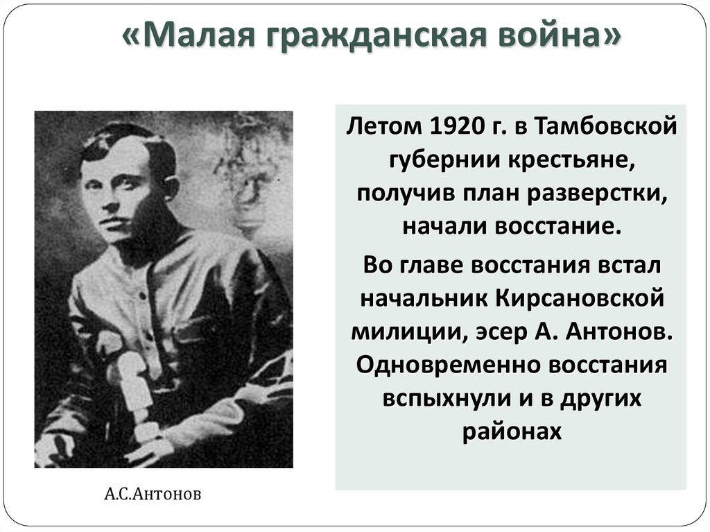 «Малая гражданская война»Летом 1920 г. в Тамбовской