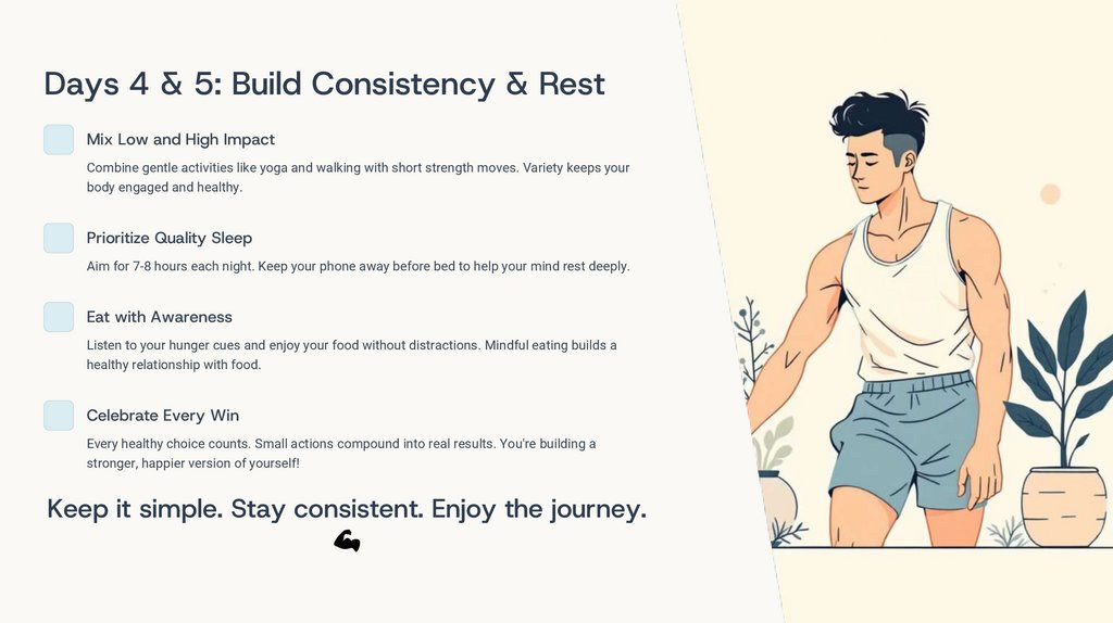 Join me on a journey through five days of simple, sustainable healthy habits.