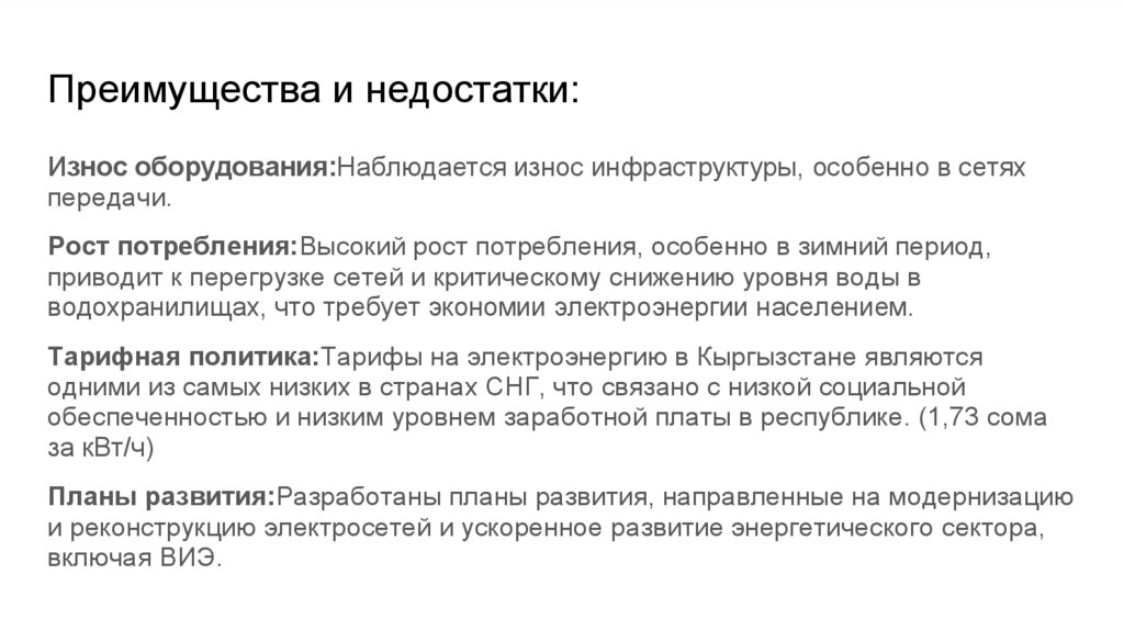 Преимущества и недостатки:Износ оборудования:Наблюдается износ инфраструктуры, особенно в сетях