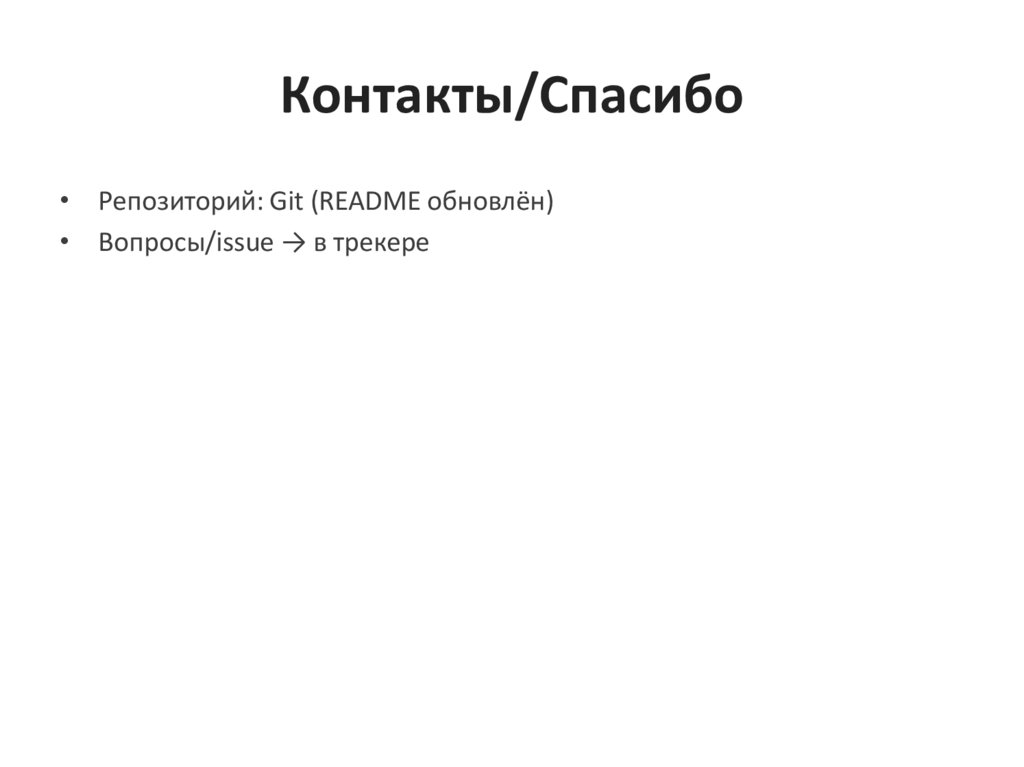 Контакты/Спасибо• Репозиторий: Git (README обновлён)