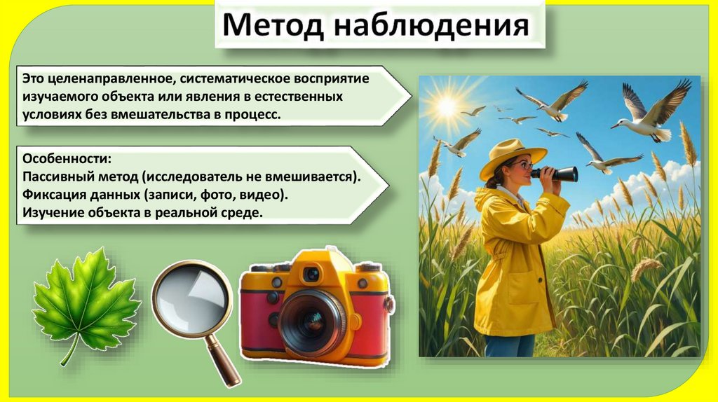 Это целенаправленное, систематическое восприятиеизучаемого объекта или явления в естественных