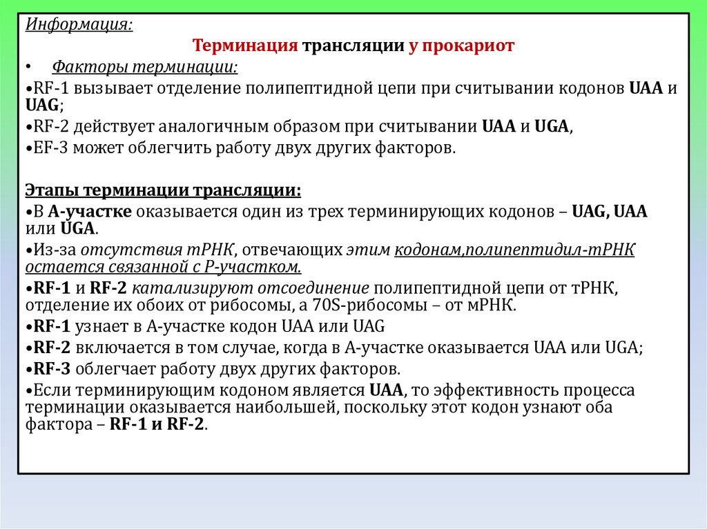 кодон, факторы трансляции)