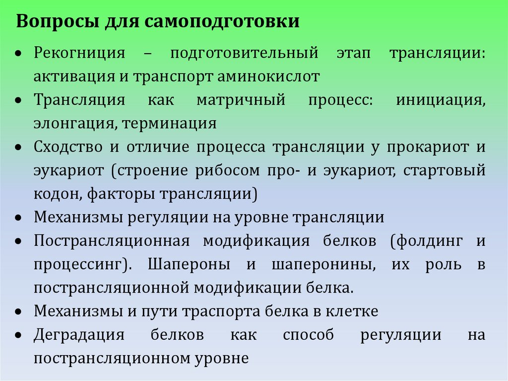 Вопросы для самоподготовкиРекогниция – подготовительный этап трансляции: