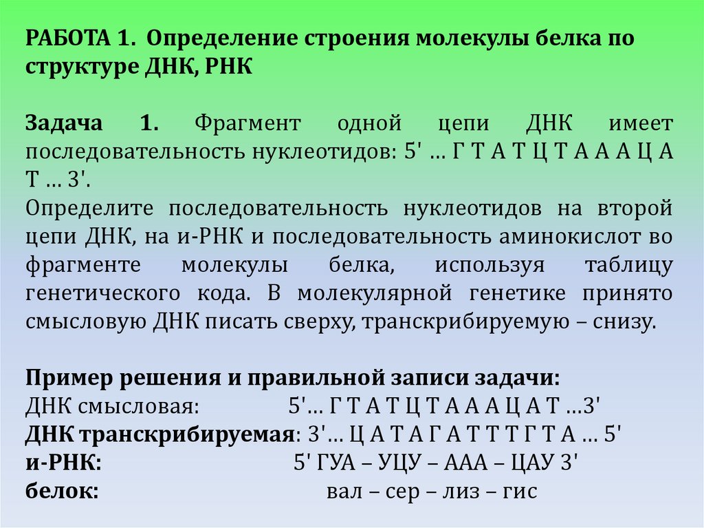 РАБОТА 1. Определение строения молекулы белка поструктуре ДНК, РНК