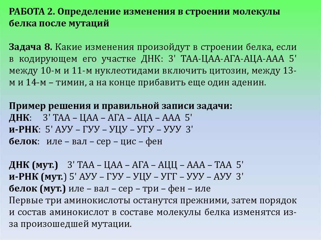 Задача 8. Какие изменения произойдут в строении белка, если
