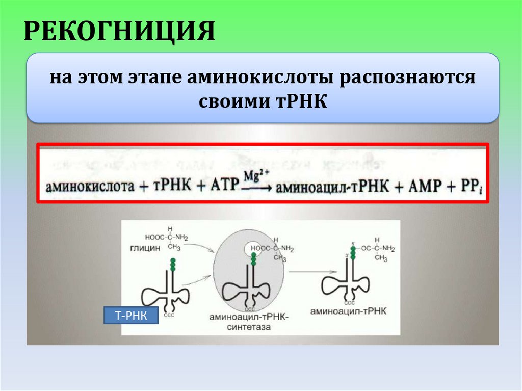 РЕКОГНИЦИЯна этом этапе аминокислоты распознаются