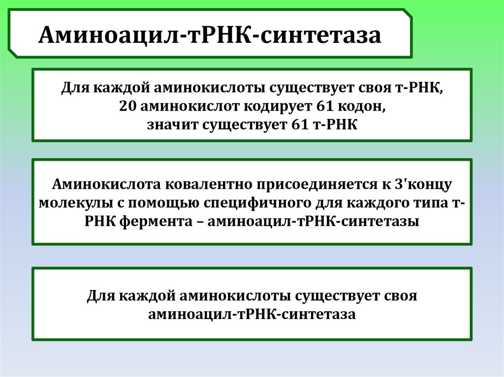 Аминоацил-тРНК-синтетазаДля каждой аминокислоты существует своя т-РНК,