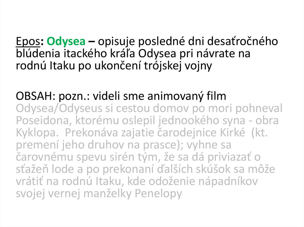 • Trója je dobytá ľsťou, zásluhou Odysea sa postaví drevený