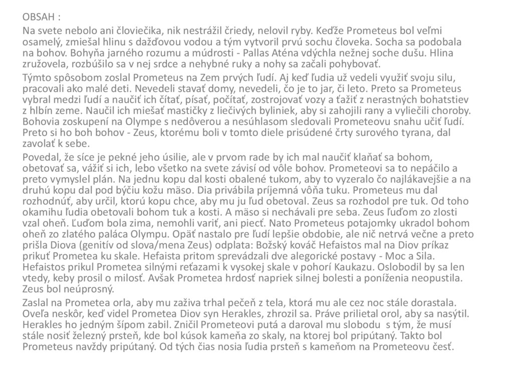 obetovať sa, vážiť si ich, lebo všetko na svete závisí od vôle bohov. Prometeovi sa to nepáčilo a