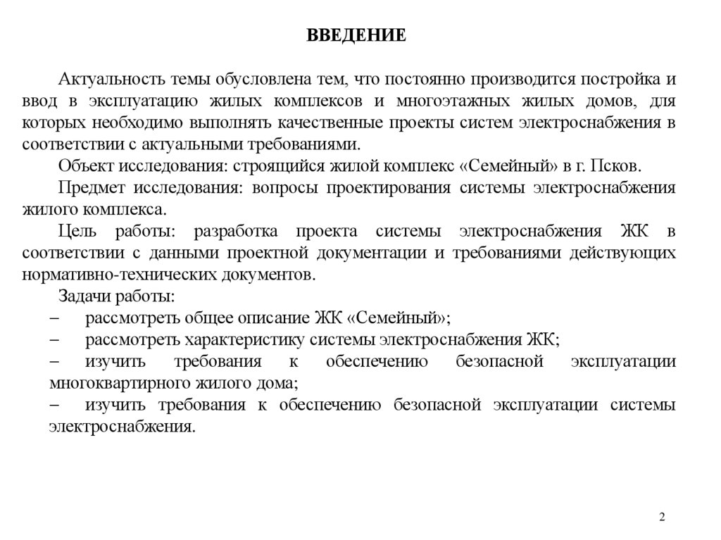 Предмет исследования: вопросы проектирования системы электроснабжения