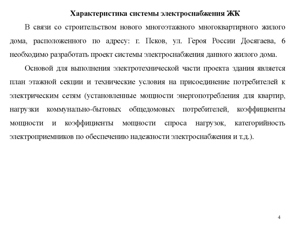 Характеристика системы электроснабжения ЖКВ связи со строительством нового многоэтажного многоквартирного жилого
