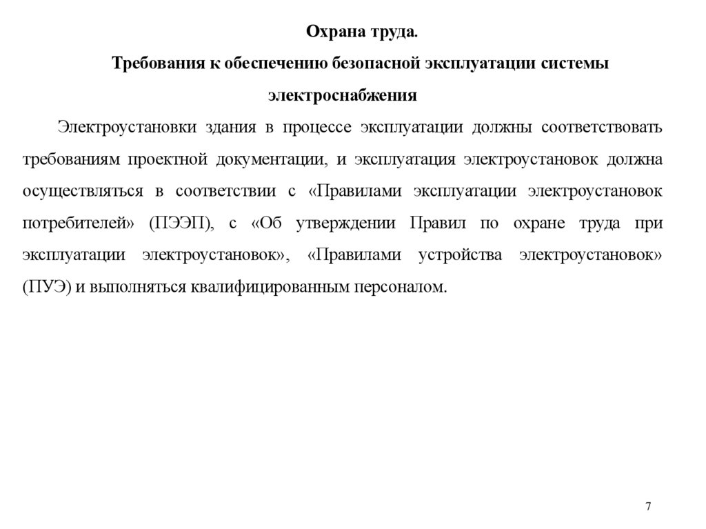 Электроустановки здания в процессе эксплуатации должны соответствовать