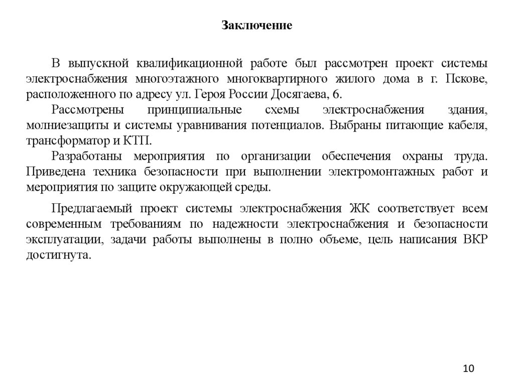 электроснабжения многоэтажного многоквартирного жилого дома в г. Пскове,
