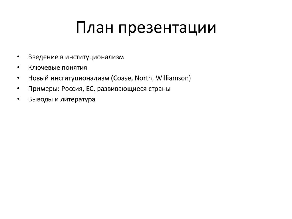План презентацииВведение в институционализм