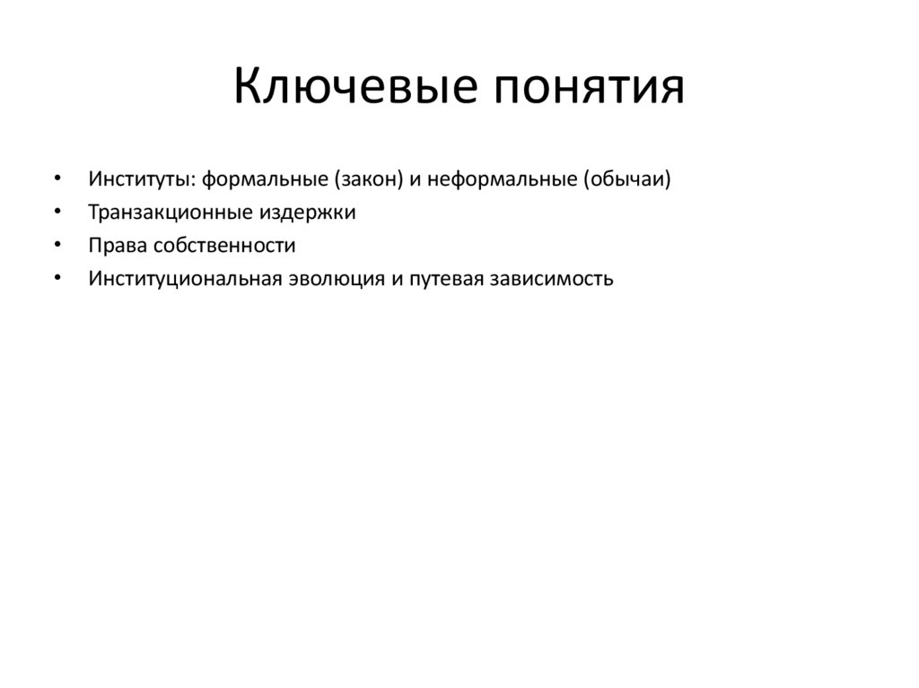 Ключевые понятияИнституты: формальные (закон) и неформальные (обычаи)