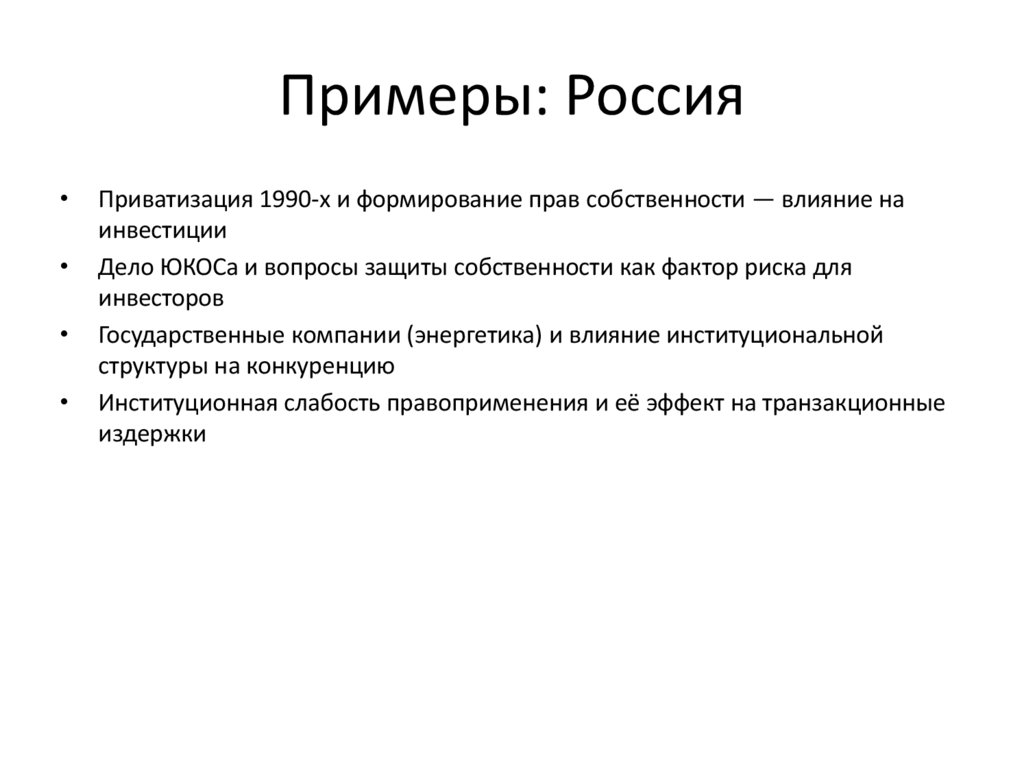 Примеры: РоссияПриватизация 1990-х и формирование прав собственности — влияние на
