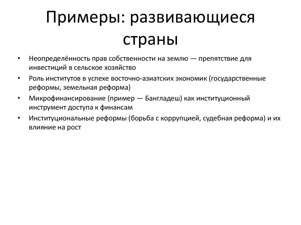 Примеры: Россия, ЕС, развивающиеся страны