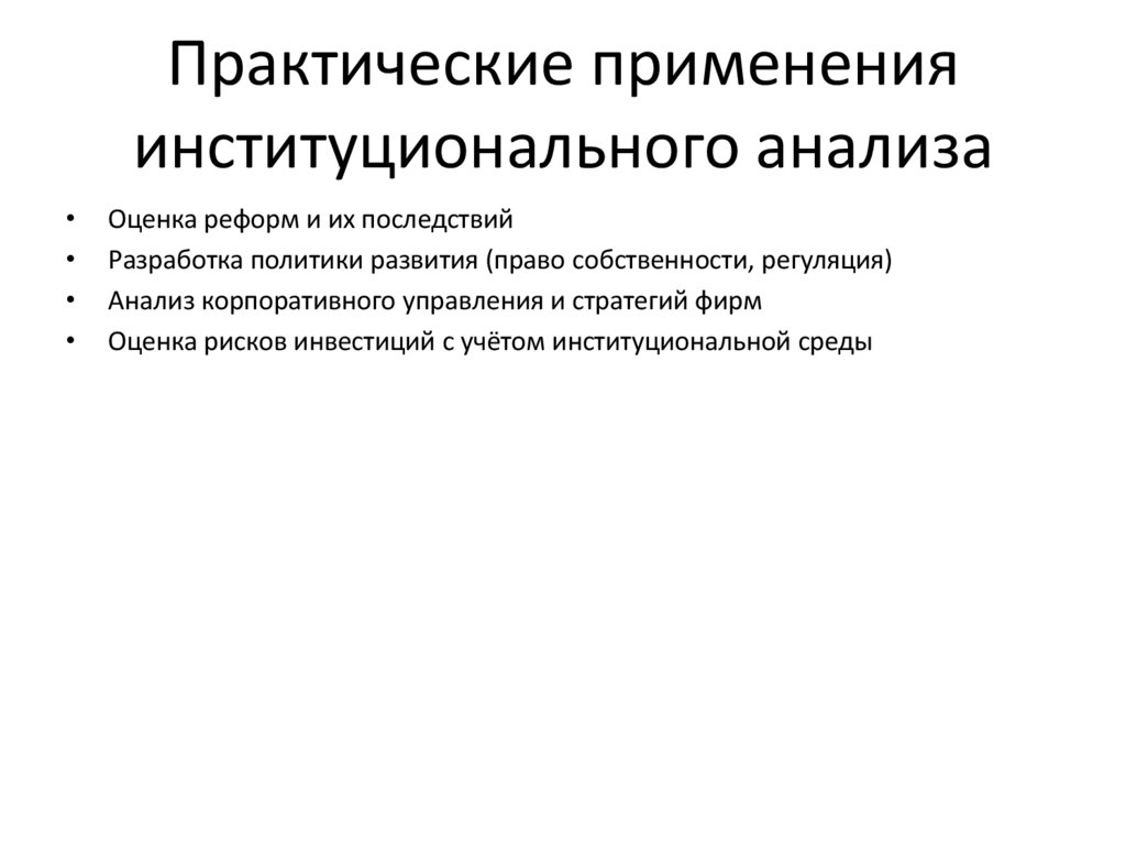 Практические примененияинституционального анализа