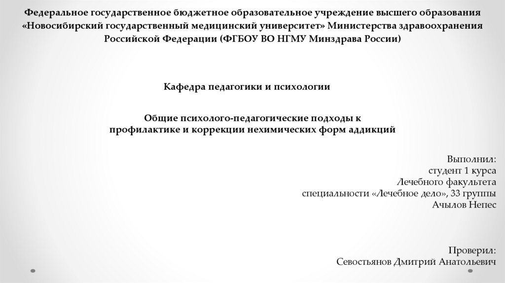 Федеральное государственное бюджетное образовательное учреждение высшего образования«Новосибирский государственный медицинский университет» Министерства здравоохранения