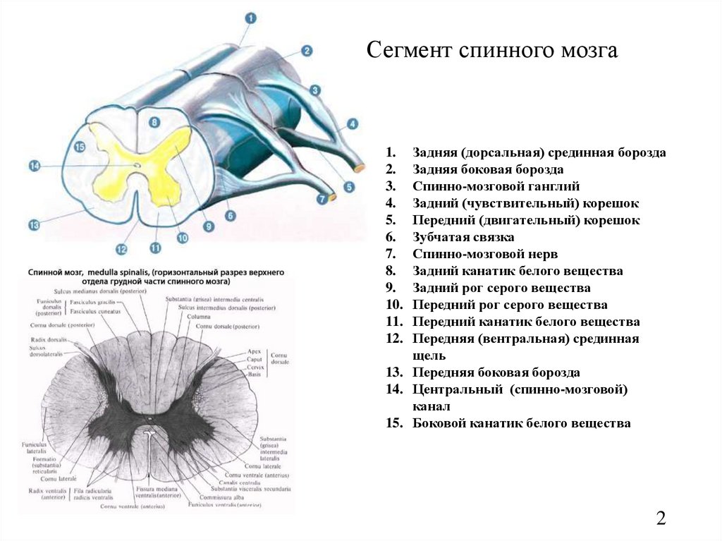 Сегмент спинного мозга1. Задняя (дорсальная) срединная борозда