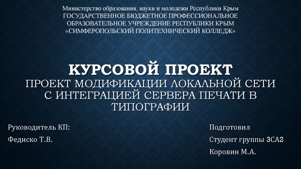 1. КУРСОВОЙ ПРОЕКТ ПРОЕКТ МОДИФИКАЦИИ ЛОКАЛЬНОЙ СЕТИ С ИНТЕГРАЦИЕЙ СЕРВЕРА ПЕЧАТИ В ТИПОГРАФИИ