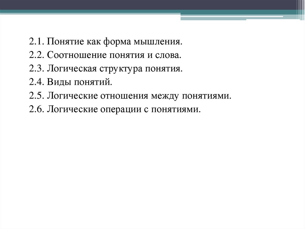 2.1. Понятие как форма мышления.2.2. Соотношение понятия и слова.