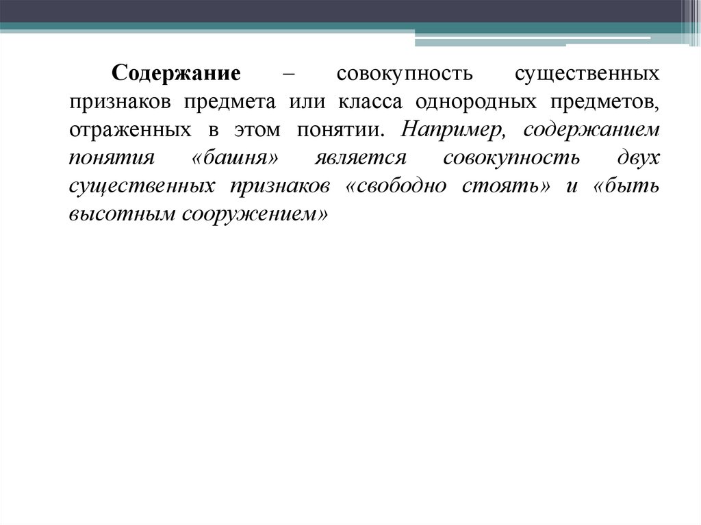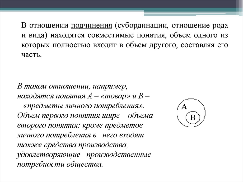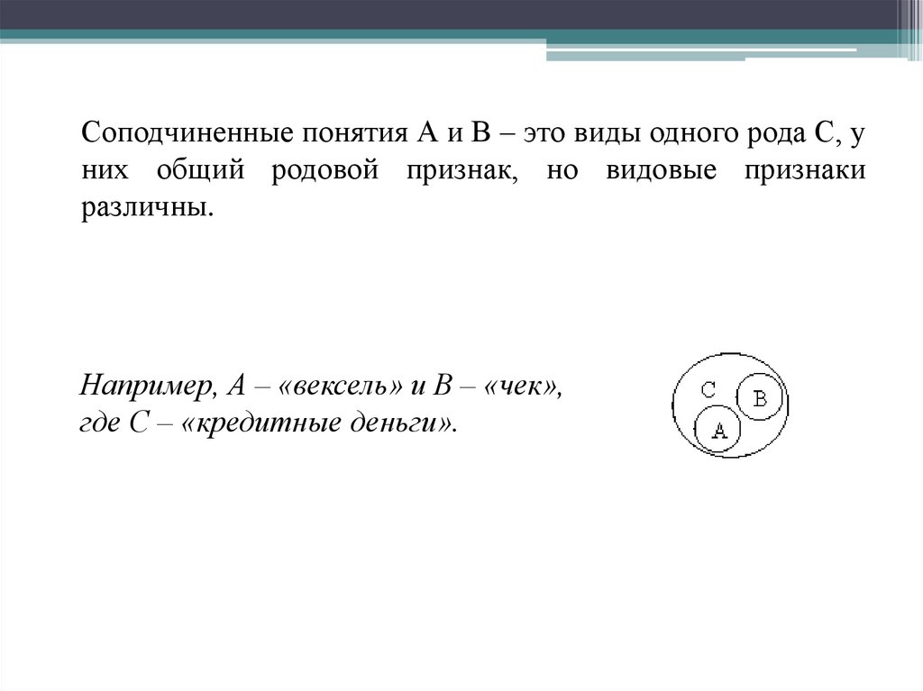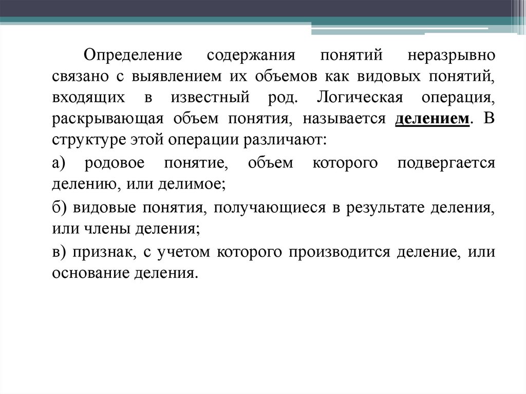 Определение содержания понятий неразрывносвязано с выявлением их объемов как видовых понятий,