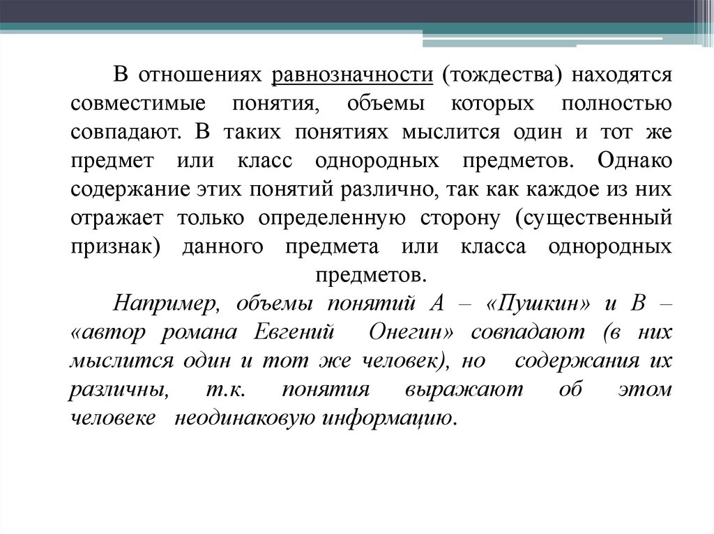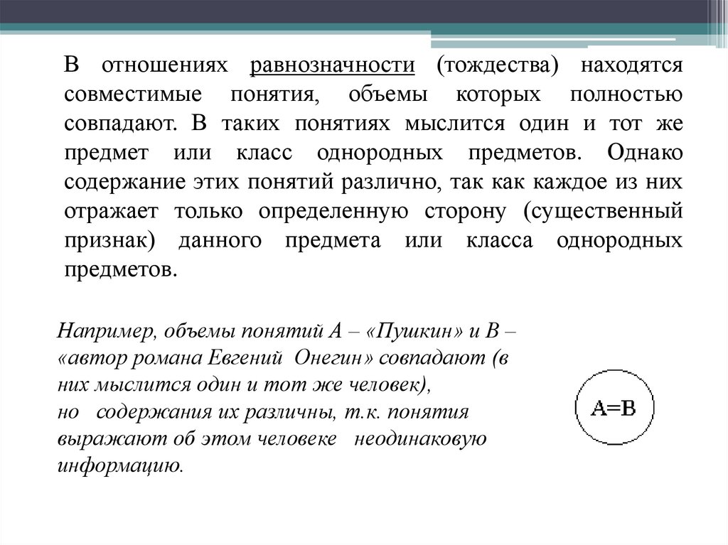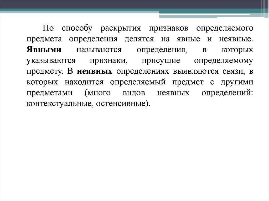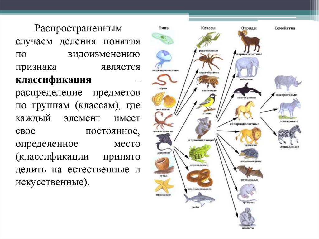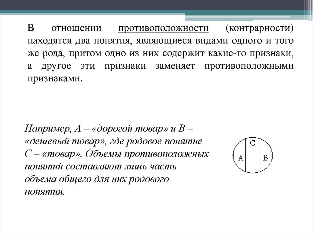 Определение содержания понятий неразрывносвязано с выявлением их объемов как видовых понятий,