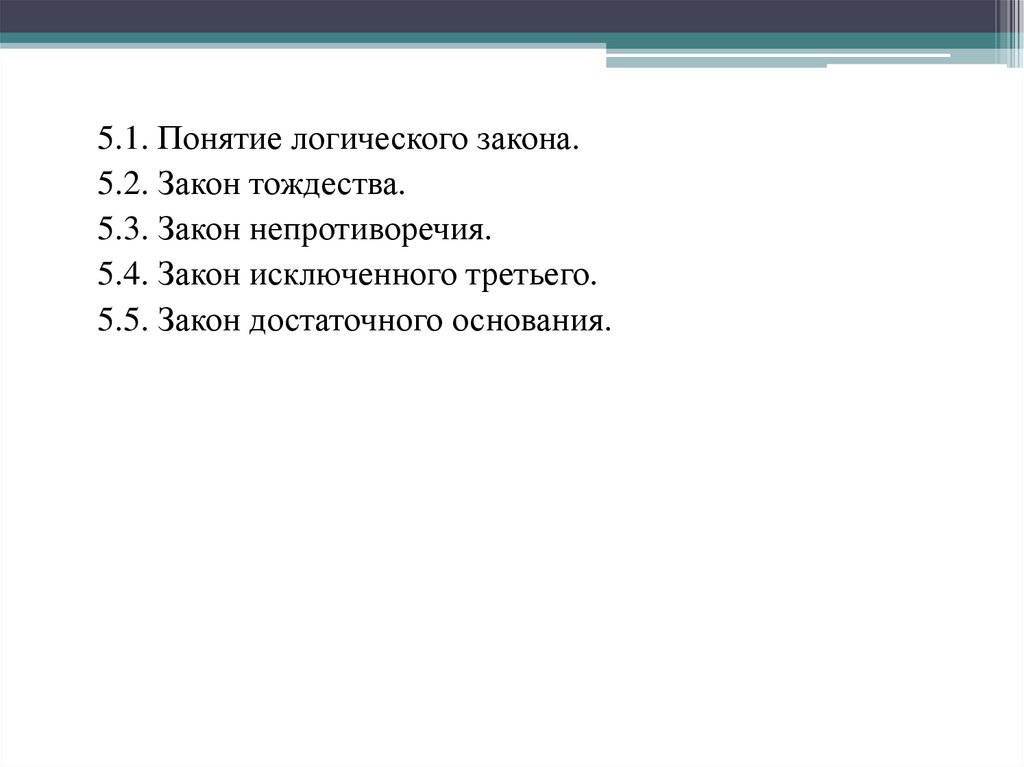 5.1. Понятие логического закона.5.2. Закон тождества.
