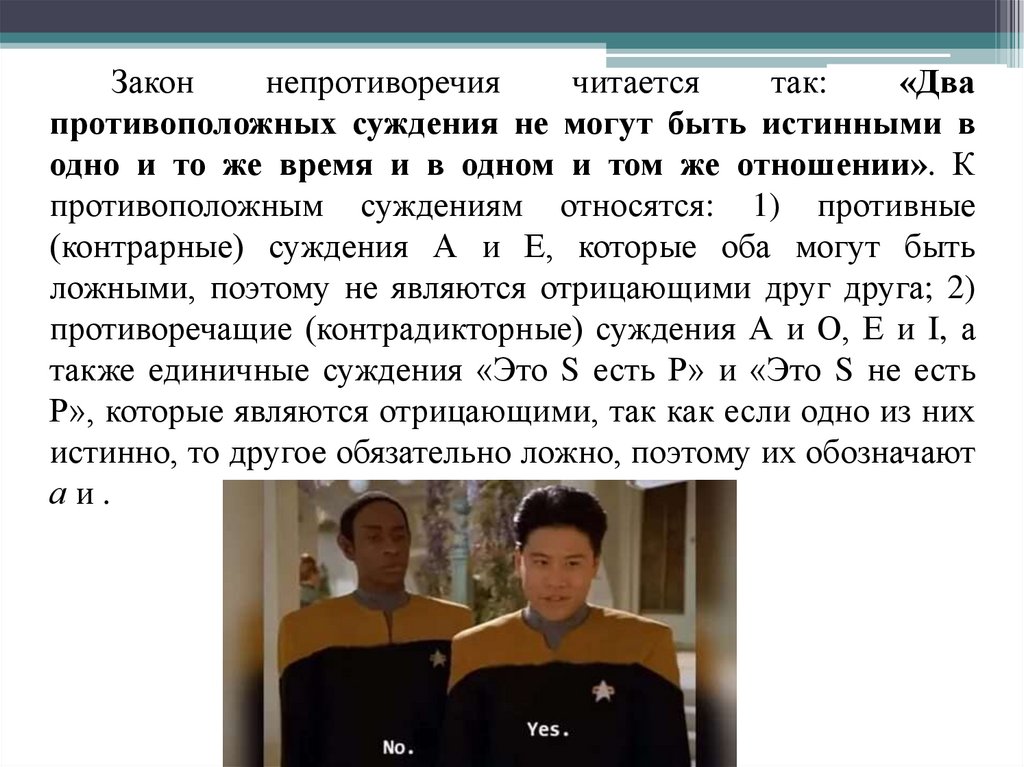 суждения а и не-а не могут быть оба истинными, и