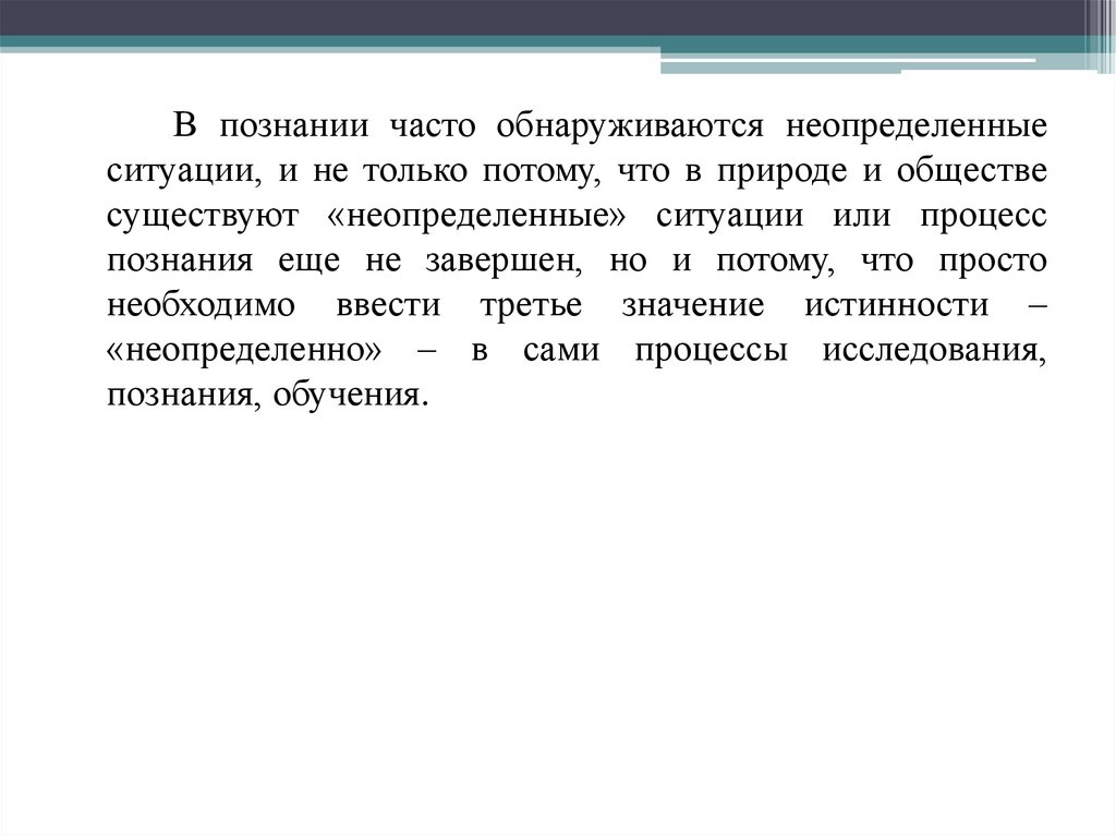 В познании часто обнаруживаются неопределенныеситуации, и не только потому, что в природе и обществе
