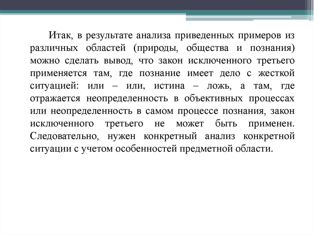 обстоятельство в виде закона исключенного третьего.