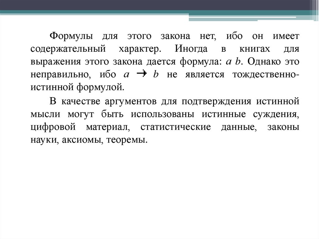 Этот закон формулируется так: «Всякая истиннаямысль должна быть достаточно обоснованной». Речь
