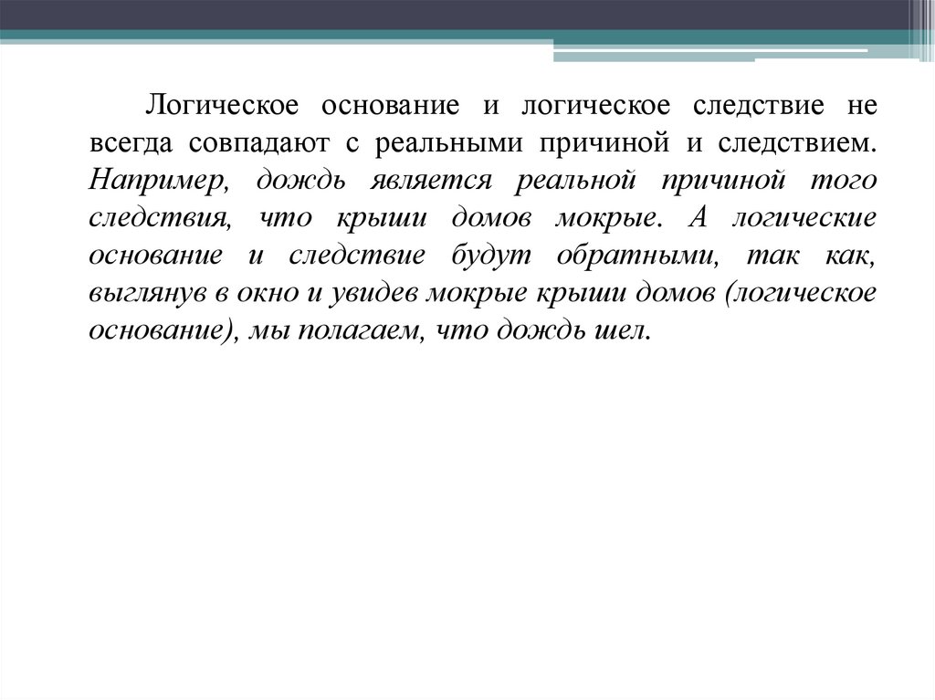 Логическое основание и логическое следствие невсегда совпадают с реальными причиной и следствием.