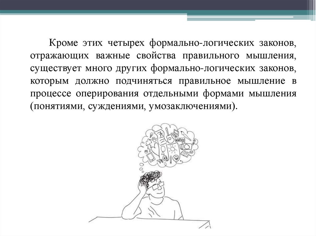 Кроме этих четырех формально-логических законов,отражающих важные свойства правильного мышления,