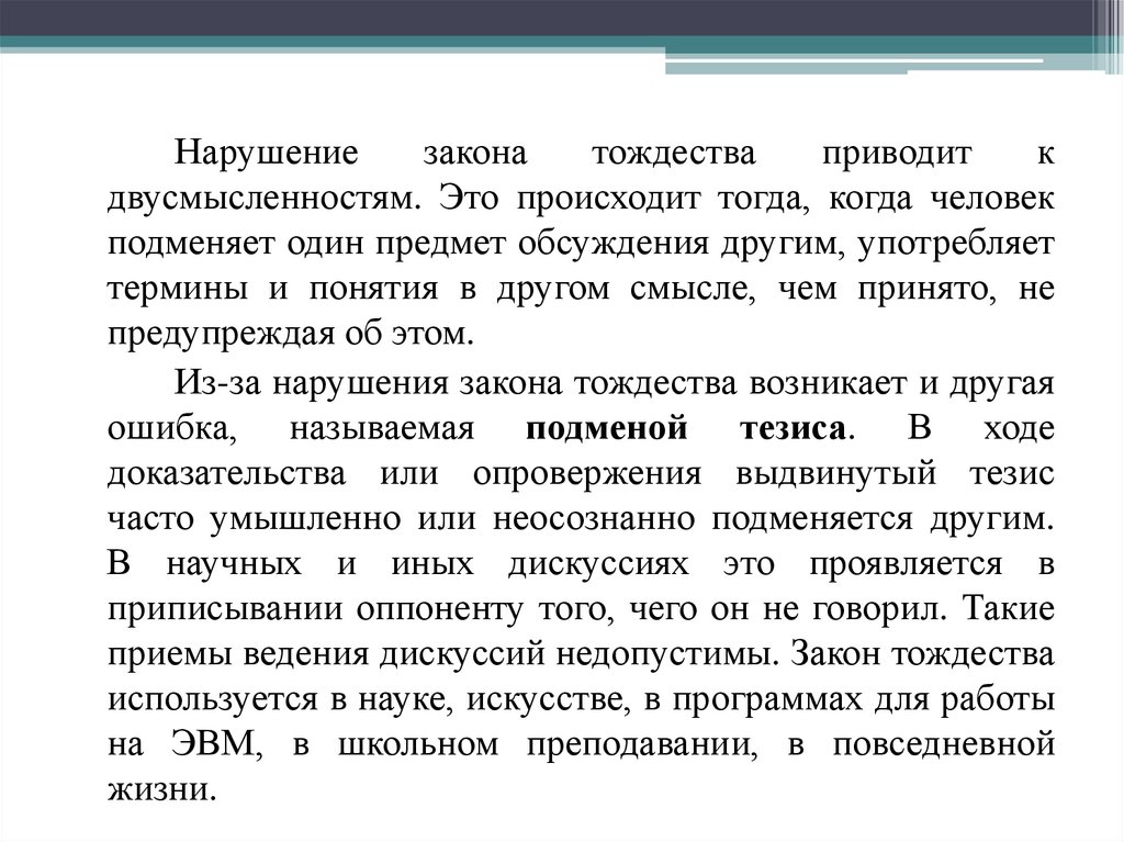 приемы ведения дискуссий недопустимы. Закон тождества